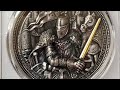 2021 2 Oz Silver $5 Niue Assassins KNIGHTS TEMPLAR PCGS MS70 Gold Shield Coin.